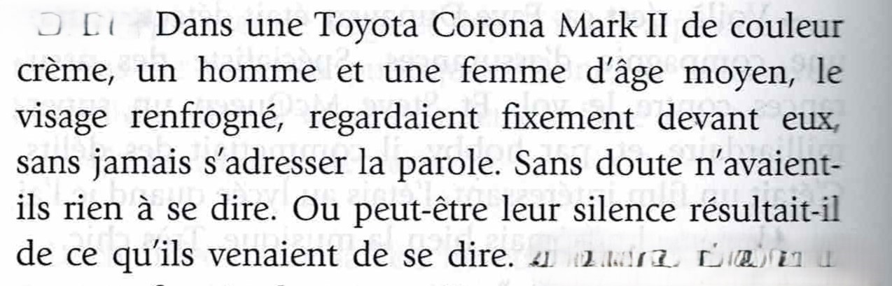 Mon esprit s’est arrêté sur ce que j’appelle une pépite : des choses simples, efficaces, cinématographiques. Je m’attache beaucoup à cela dans mes romans ; je trouve que c’est essentiel. Et Murakami, lui, est un maître en la matière.