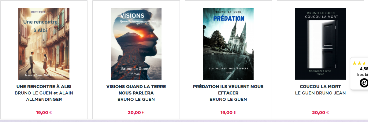 Quatre de mes romans sont disponibles en librairie, les autres suivront.