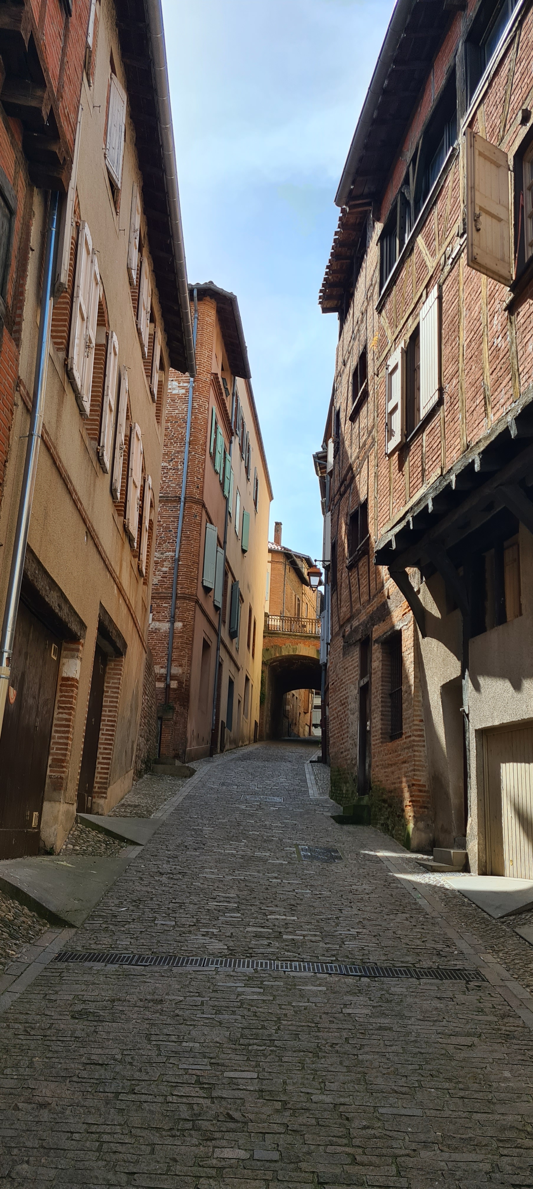 Il y a une course poursuite dans le roman, et dans le scénario, au sortir du Pont Vieux, la rue bien nommée de la Grande Côte lui fait face. En l’arpentant, je me suis dit qu’y courir ne serait pas une mince affaire. Ce passage mène à la place de la Trébaille qui surplombe le Tarn ; d’où le nom évocateur de rue de la Grande Côte.