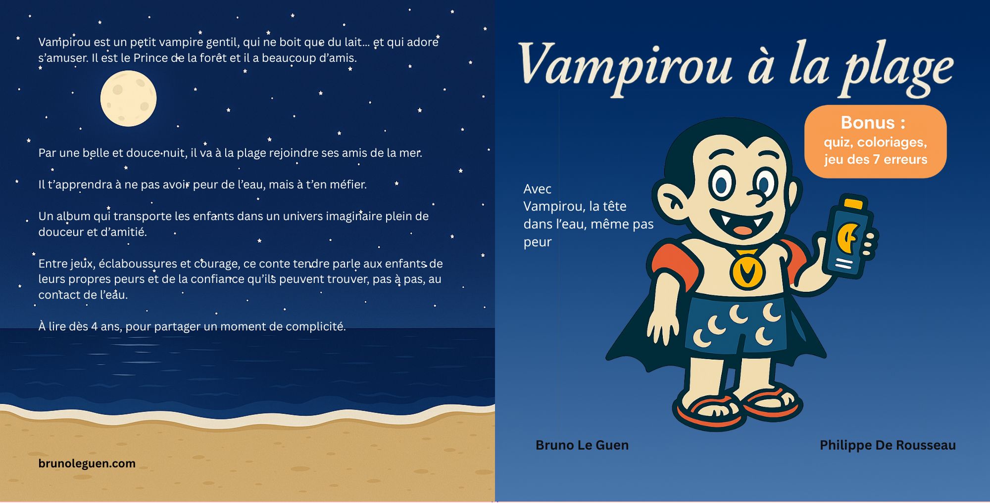 Vampirou est un gentil petit vampire, qui ne boit que du lait… et qui adore s’amuser.